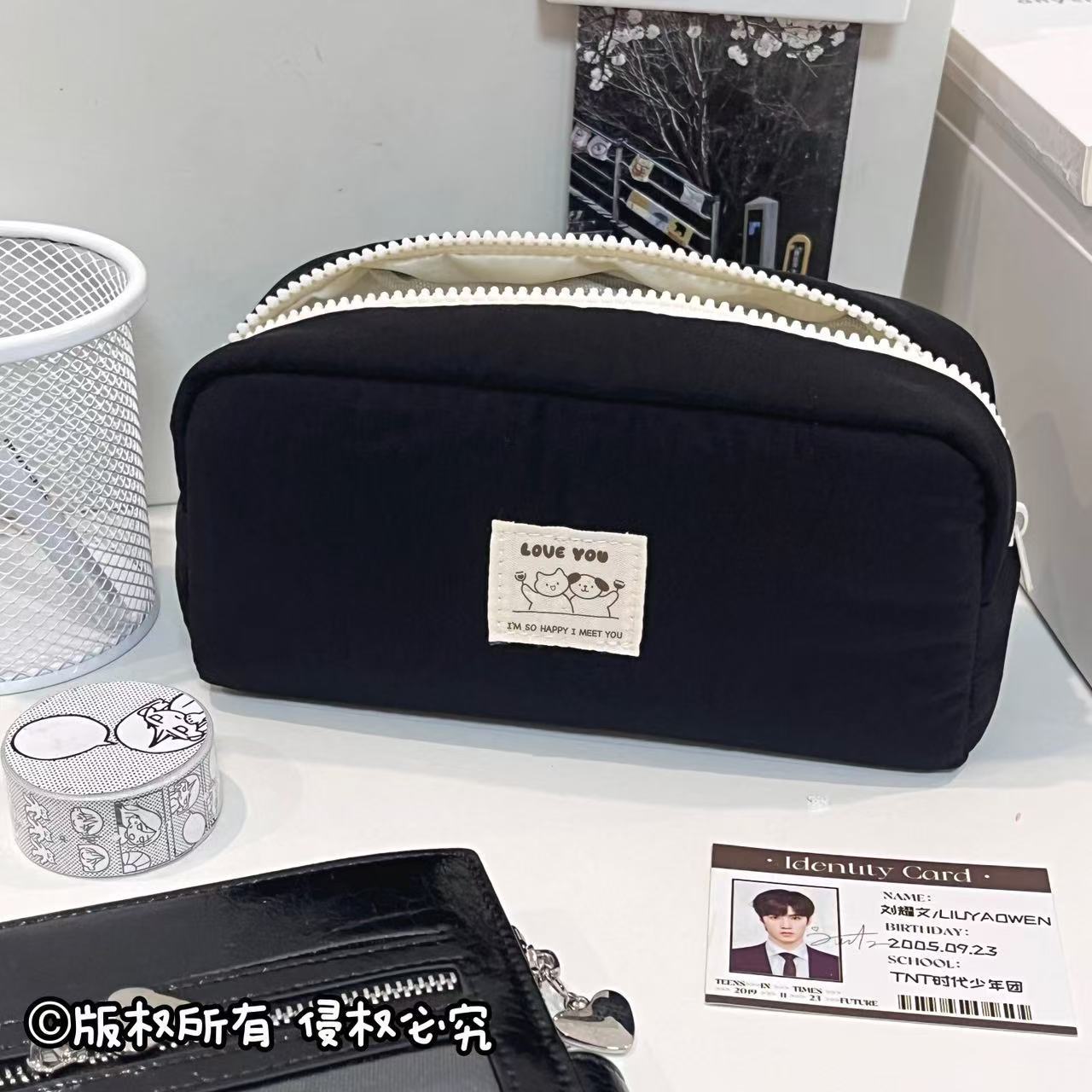 日系奶油小方墩墩包笔袋ins简约高颜值大容量学生耐用铅笔文具袋
