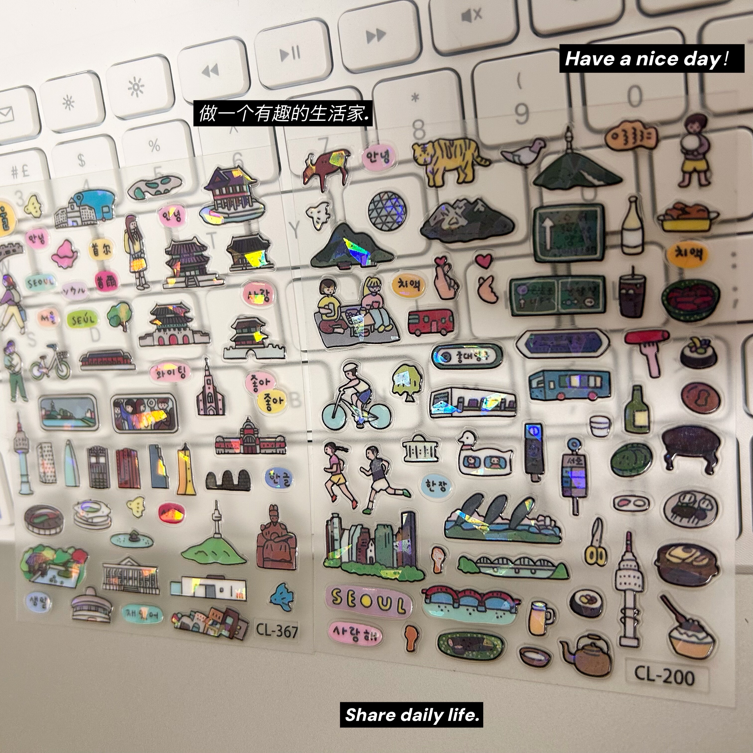 韩国INS风咕卡贴纸手帐镭射闪咕卡配件可爱风景人物贴纸迷你贴纸