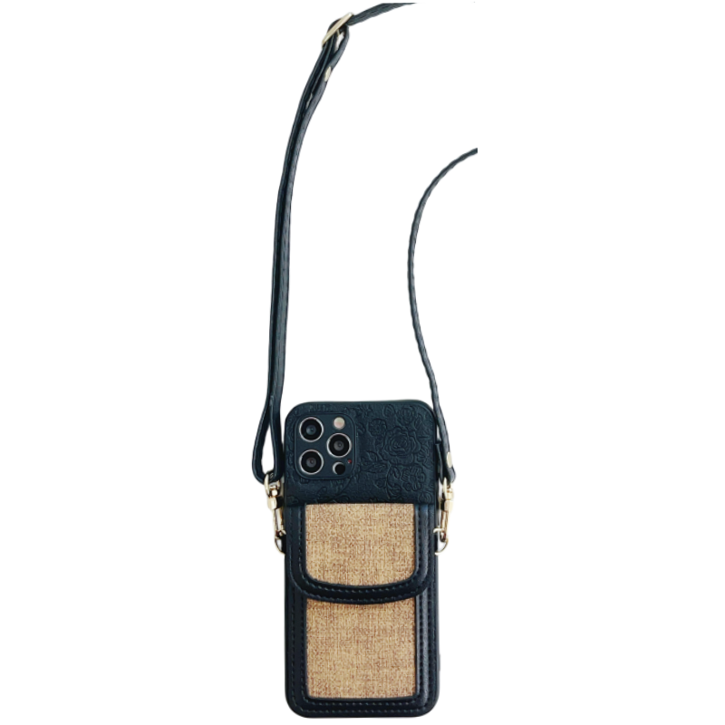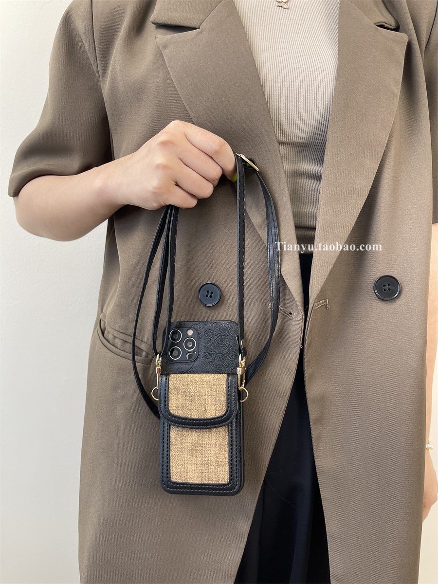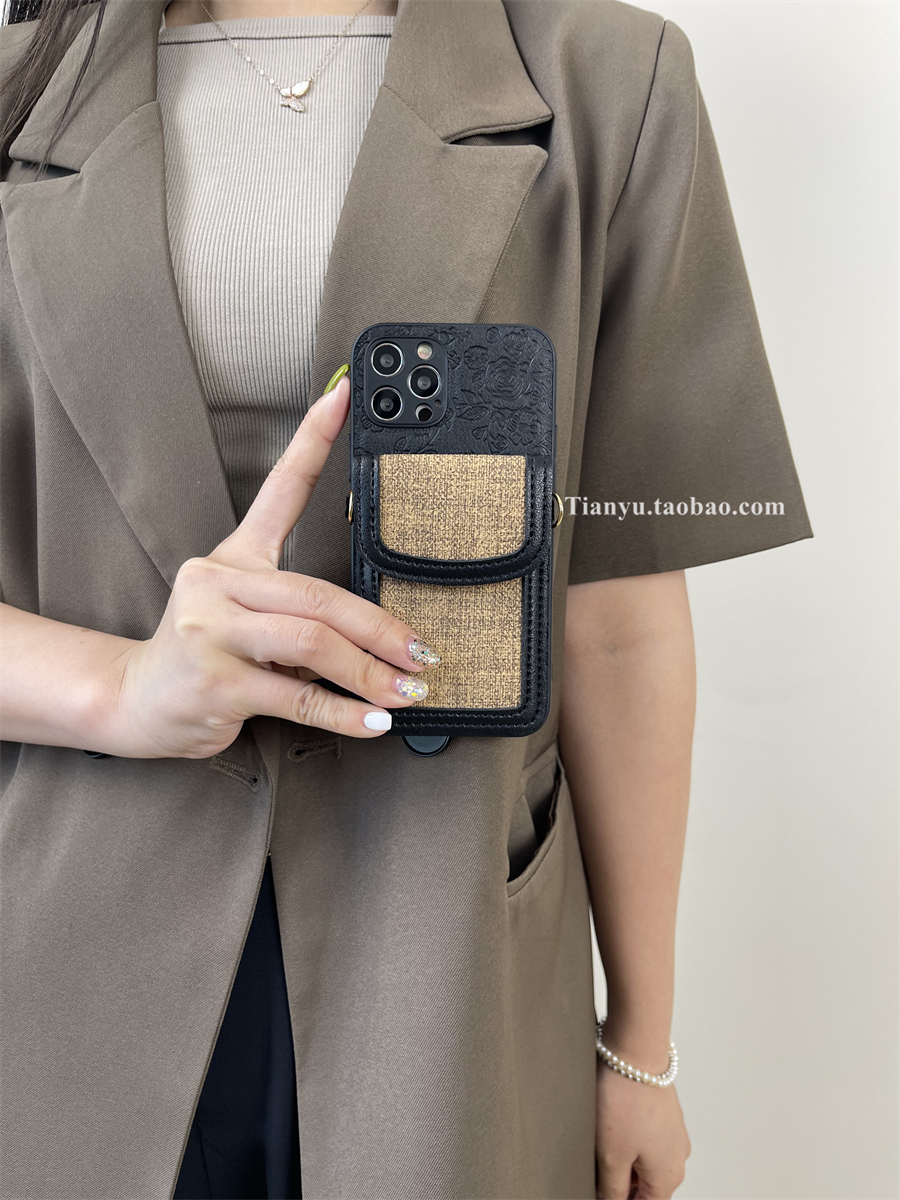 复古卡包斜挎绳适用于苹果17promax手机壳iphone16pro山茶花15promax肩带挂脖11/12高档皮质13pro新款14pro女
