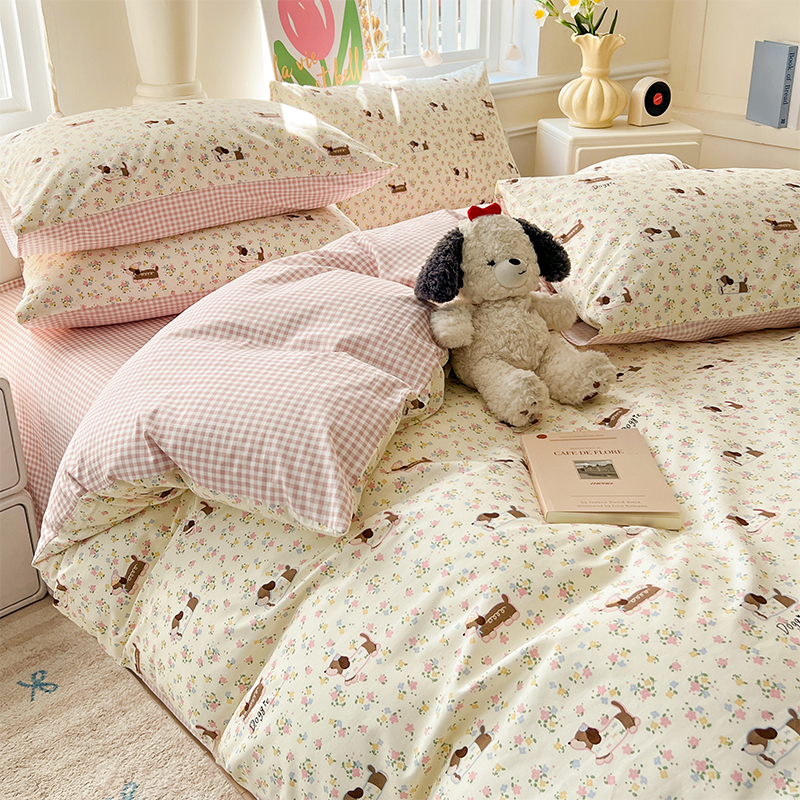 ins可爱小狗床上四件套100全棉纯棉卡通被套床单床笠三件套少女孩