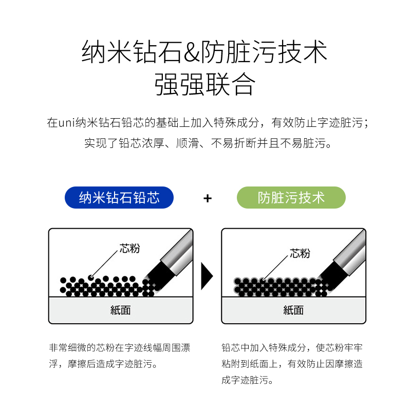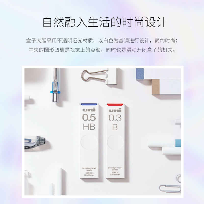 日本UNI三菱自动铅笔笔芯UL-S防蹭脏不晕染0.5/0.3/0.7/0.9替芯Smudge Proof浓黑防污迹HB进口2B学生不易断芯