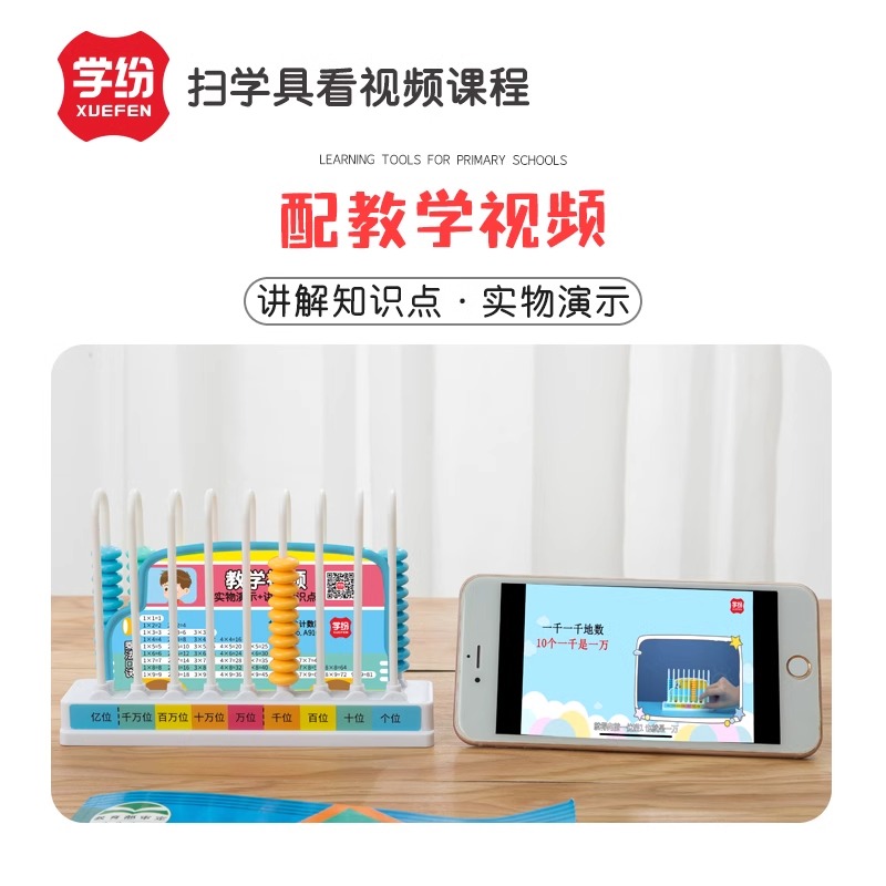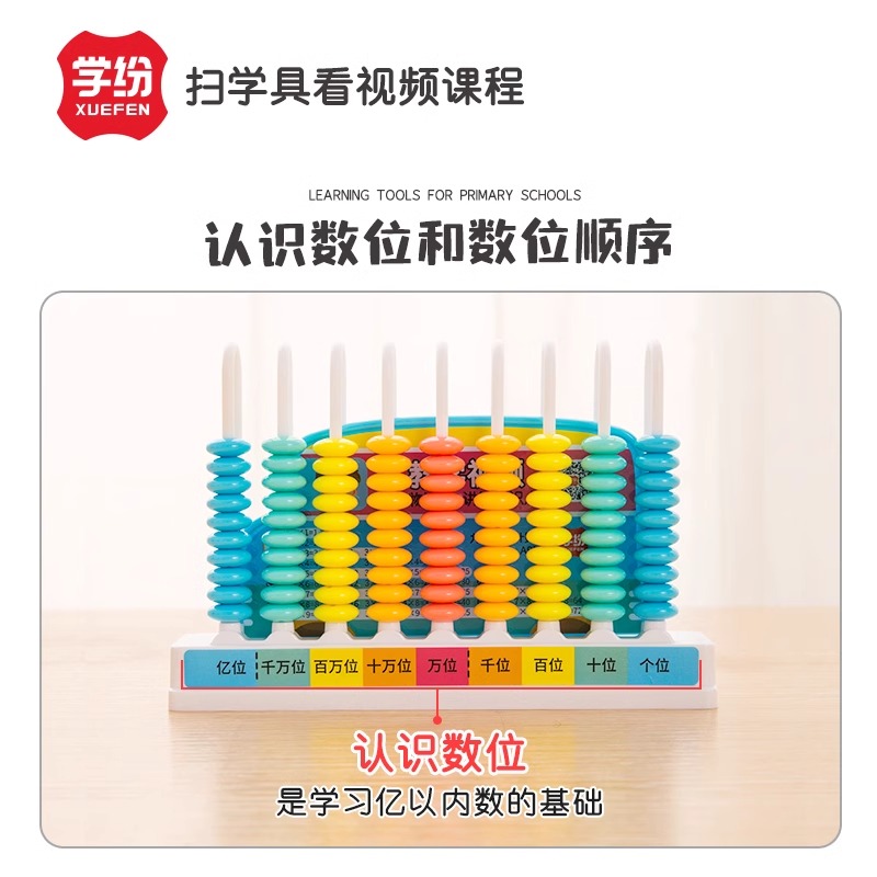 学纷九行数位计数器123年级数学通用教具小学生二年级9档彩色算珠加减法人教版北师大