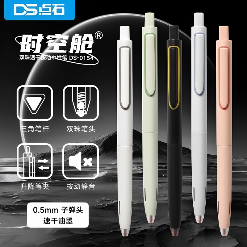 点石制笔时空舱太空舱静音按动中性笔0.5mm黑色速干顺滑水性笔学生用碳素笔子弹头替换芯按压式签字笔DS-0154