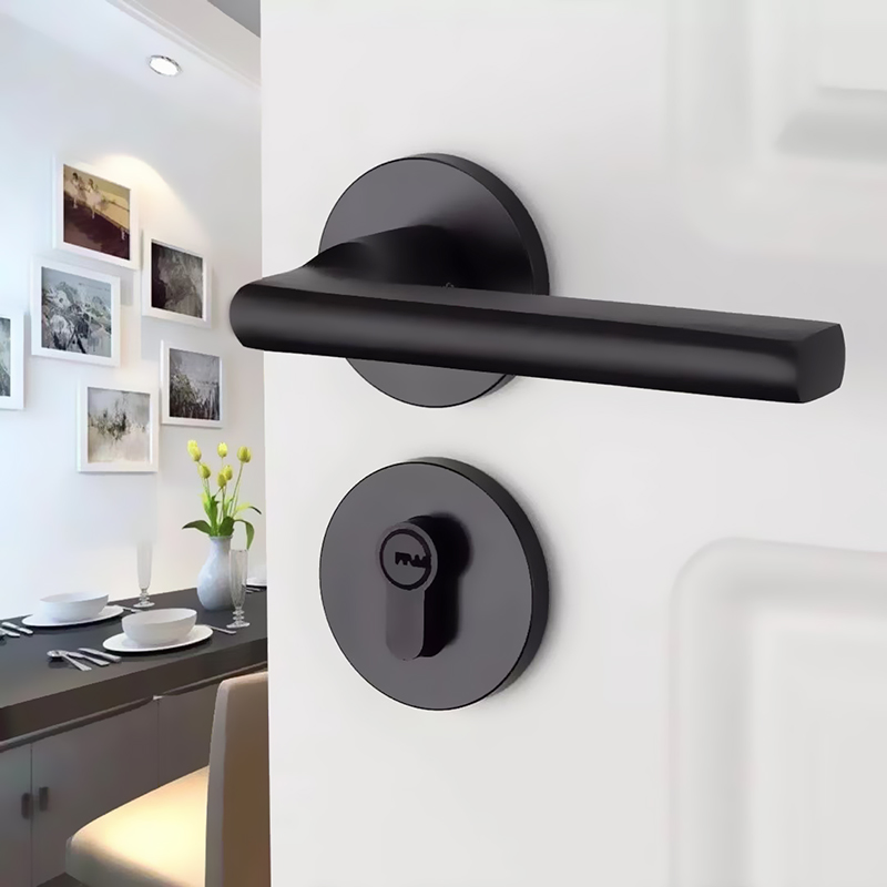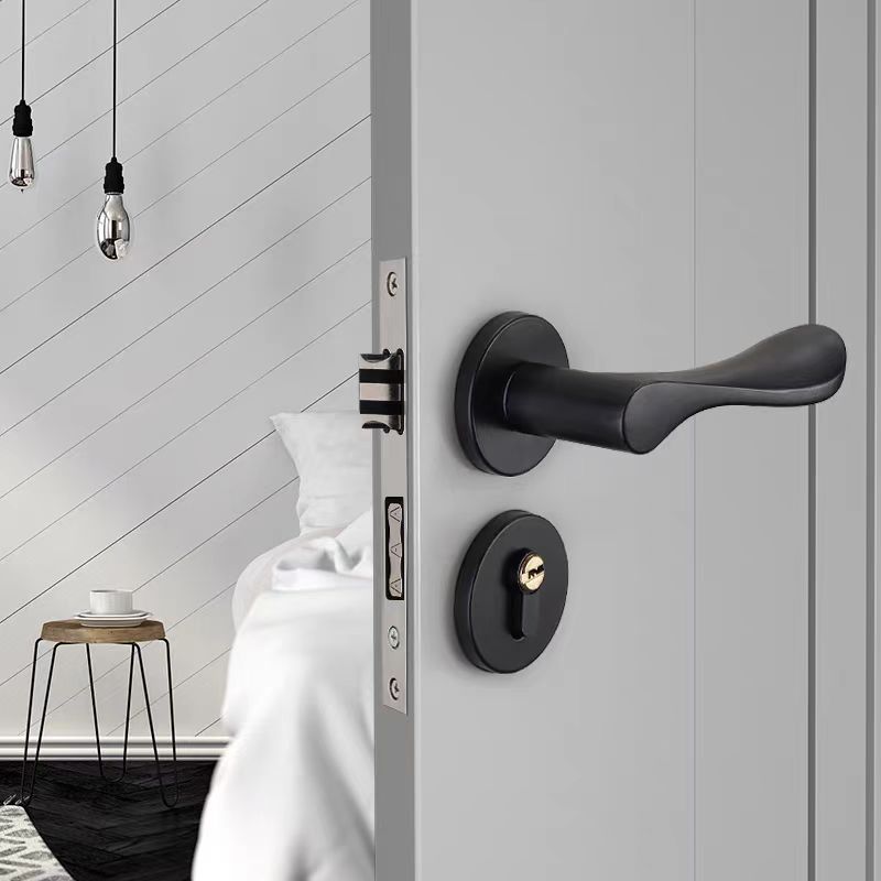 黑色卧室门锁室内门把手家用房间房门静音分体磁吸锁木门锁通用型