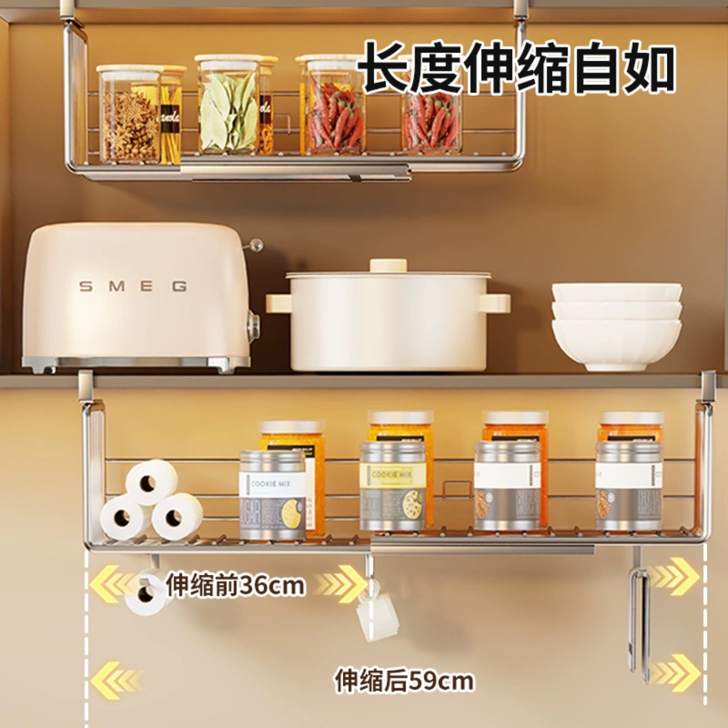 可伸缩厨房挂篮调料纸巾收纳置物架橱柜下方悬挂分层多功能置物架
