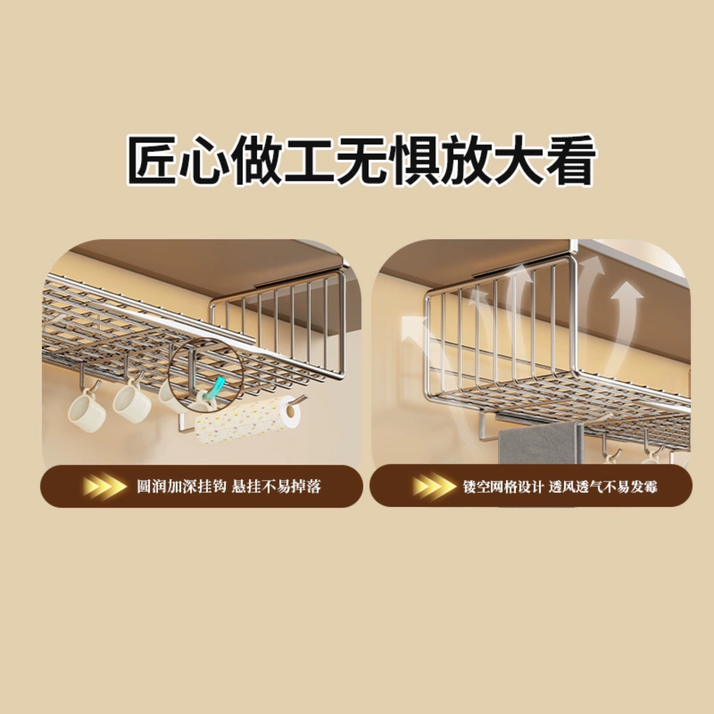 厨房置物架宿舍桌下收纳神器悬挂分层隔板桌面挂篮橱柜内吊柜挂架