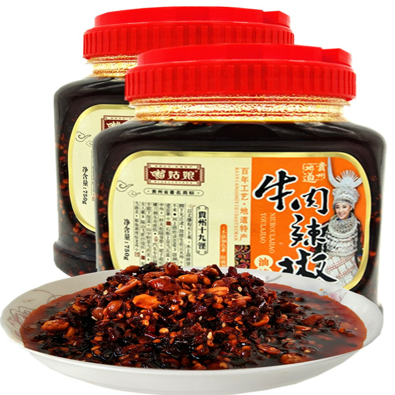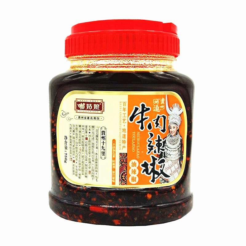苗姑娘贵州特产香辣牛肉油辣椒750g农家自制超辣下饭拌面调味酱