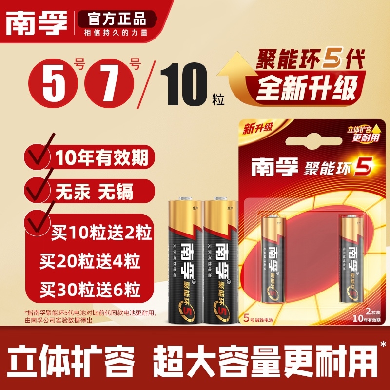 南孚电池7号5号碱性电池五号七号儿童玩具遥控器空调聚能环5代