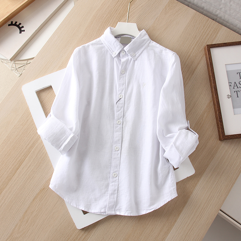 棉麻儿童装衬衣中大童男女童亲子款翻领长袖可挽袖文艺范纯色衬衫