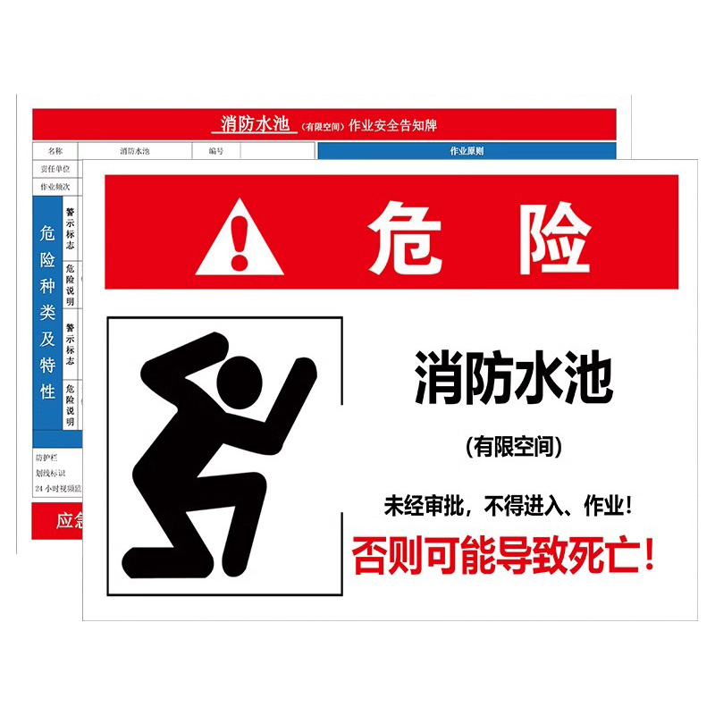 污水处理池消防水池蓄水池冷库作业安全危害告知牌有限空间受限警示牌告知卡有限空间警告标志标识牌定制