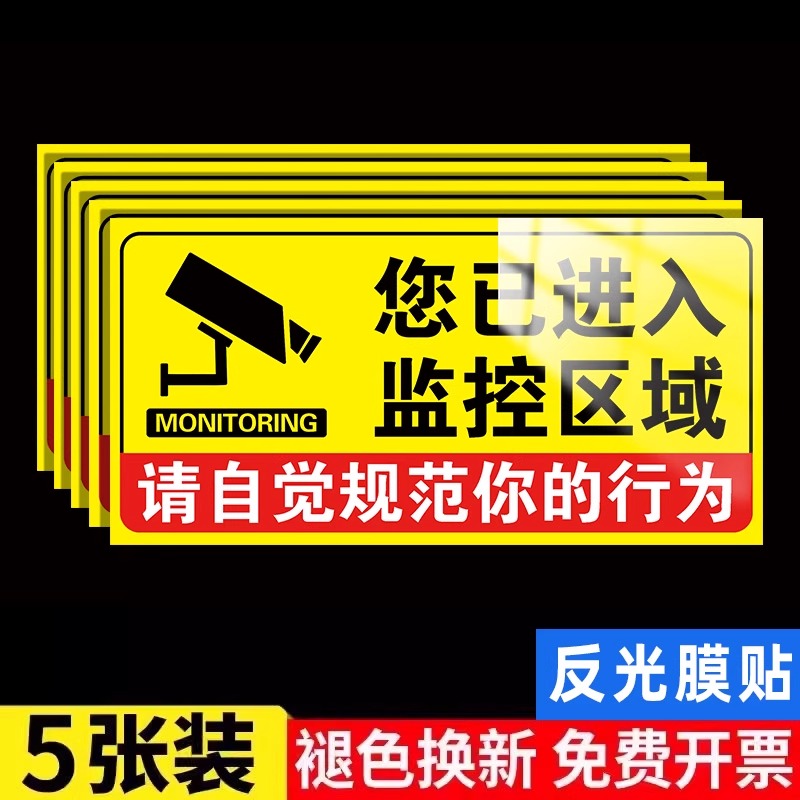 夜光贴你已进入监控区域温馨提示牌监控警示牌内有监控指示牌24小时视频监控墙贴纸夜光牌内设监控标识牌定制