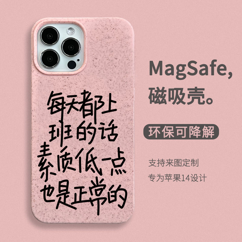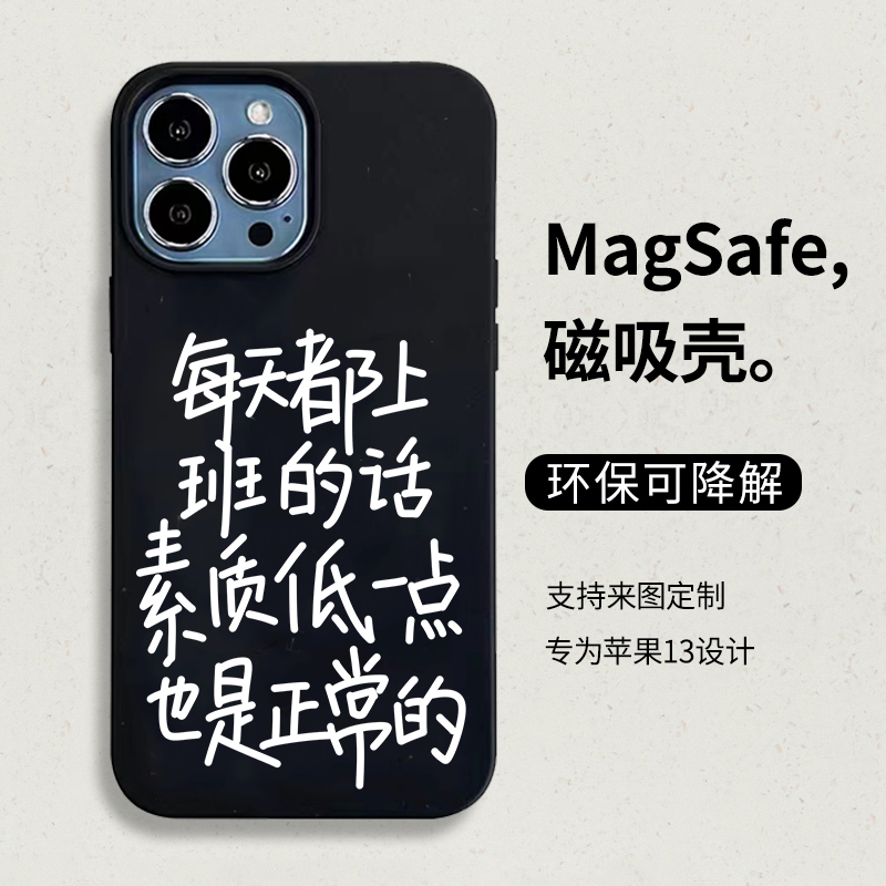 可降解磁吸手机壳适用于iPhone13每天都上班的话素质低一点也是正常的xs苹果11promax防摔12mini文字14promax