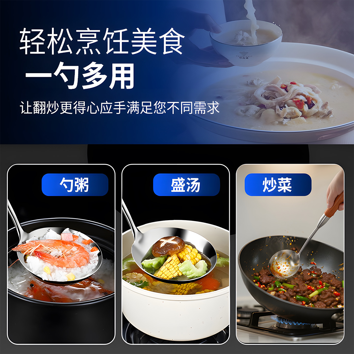 汤勺316不锈钢家用大号盛汤大勺子加厚深厨具花梨木长柄粥勺炒勺