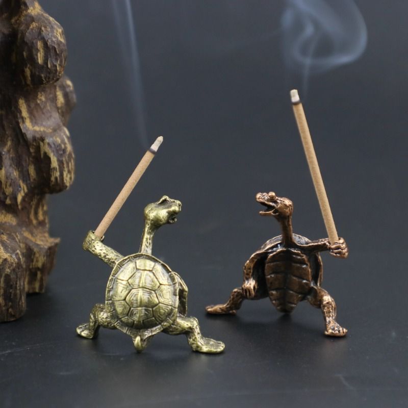 新中式功夫青铜色乌龟线香插手工玩金钱龟合金家居摆件家用