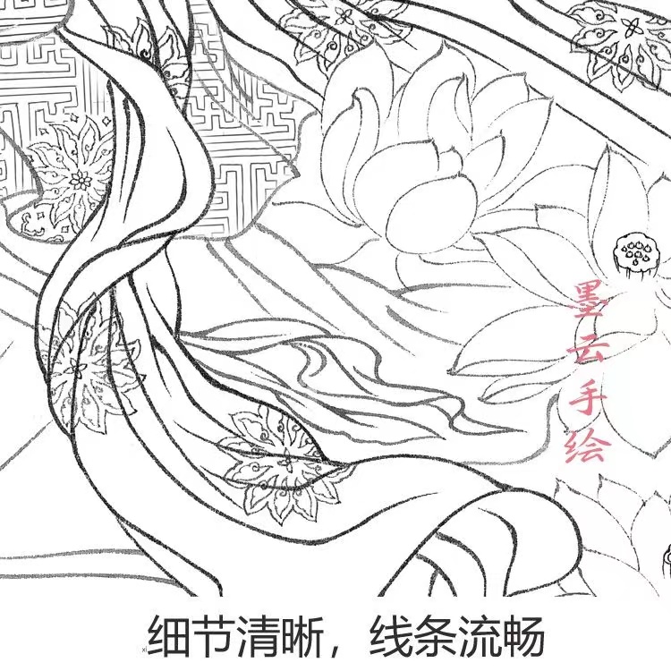 底稿•课程《莲花观音》墨云老师手绘画稿文字步骤观音学画教程