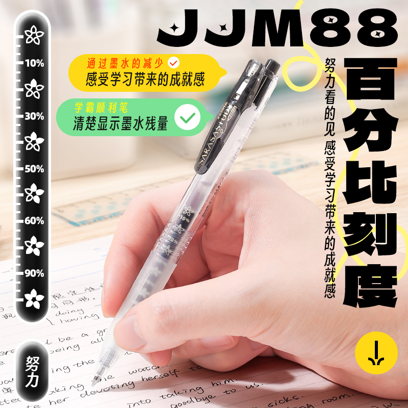 ST刷题笔高颜值按动中性笔圆珠笔黑色水笔小学生专用考试0.5速干碳素笔水性黑笔按压式做笔记签字笔非按斤卖