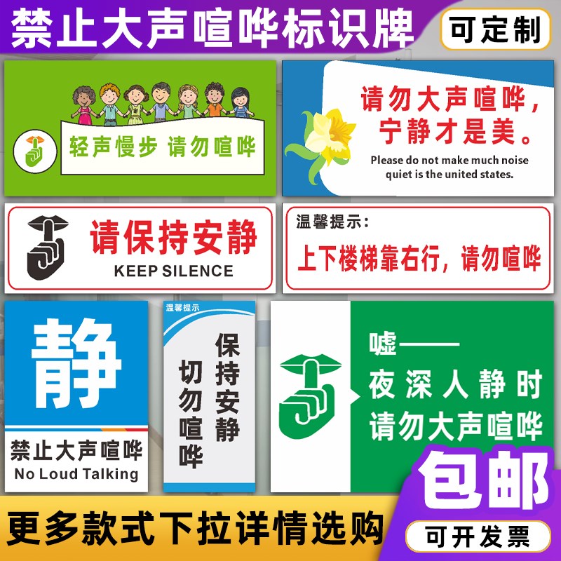 现货速发禁止大声喧哗标识牌公共区域请保持安静轻声慢步温馨提示