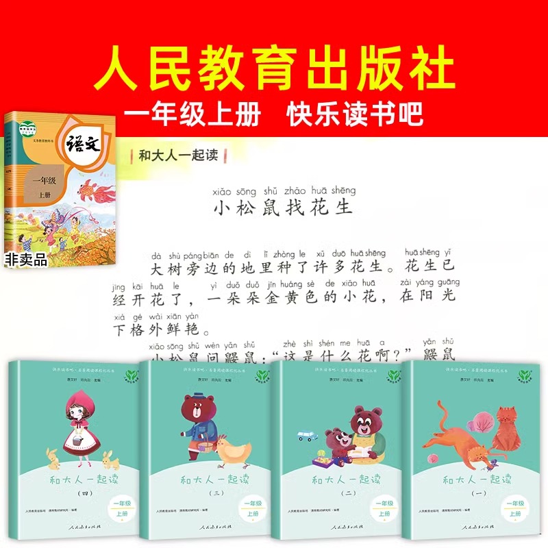 一年级上册阅读课外书必读人教版快乐读书吧全套4册1年级老师书籍小学生课外书和大人一起读 带拼音注音版读读童谣和儿歌下册
