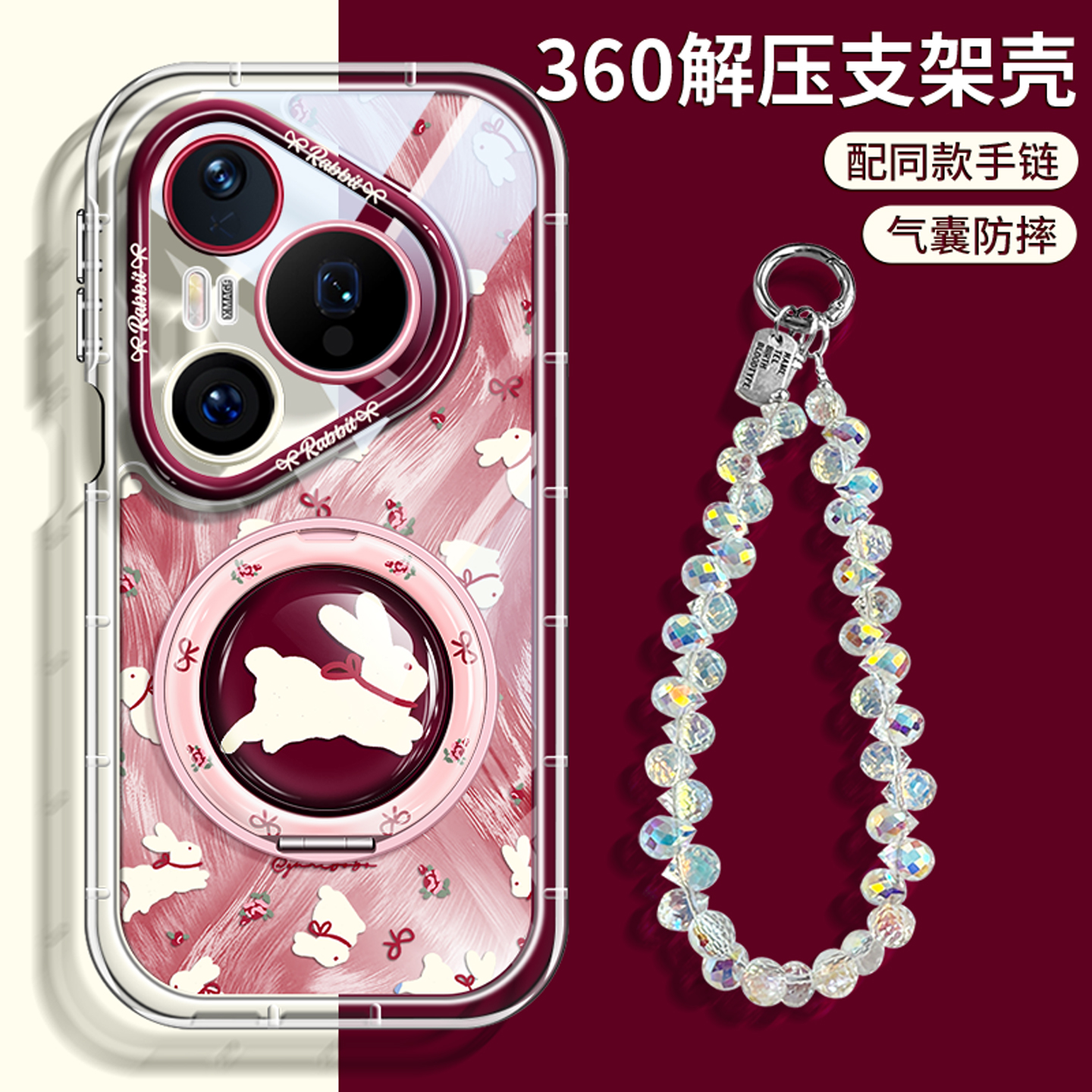 专为釉红定制沃艾尼适用华为pura80ultra手机壳p80pro+可旋转支架p70pro樱桃红p60挂绳p50新款p40高级羽纱p30