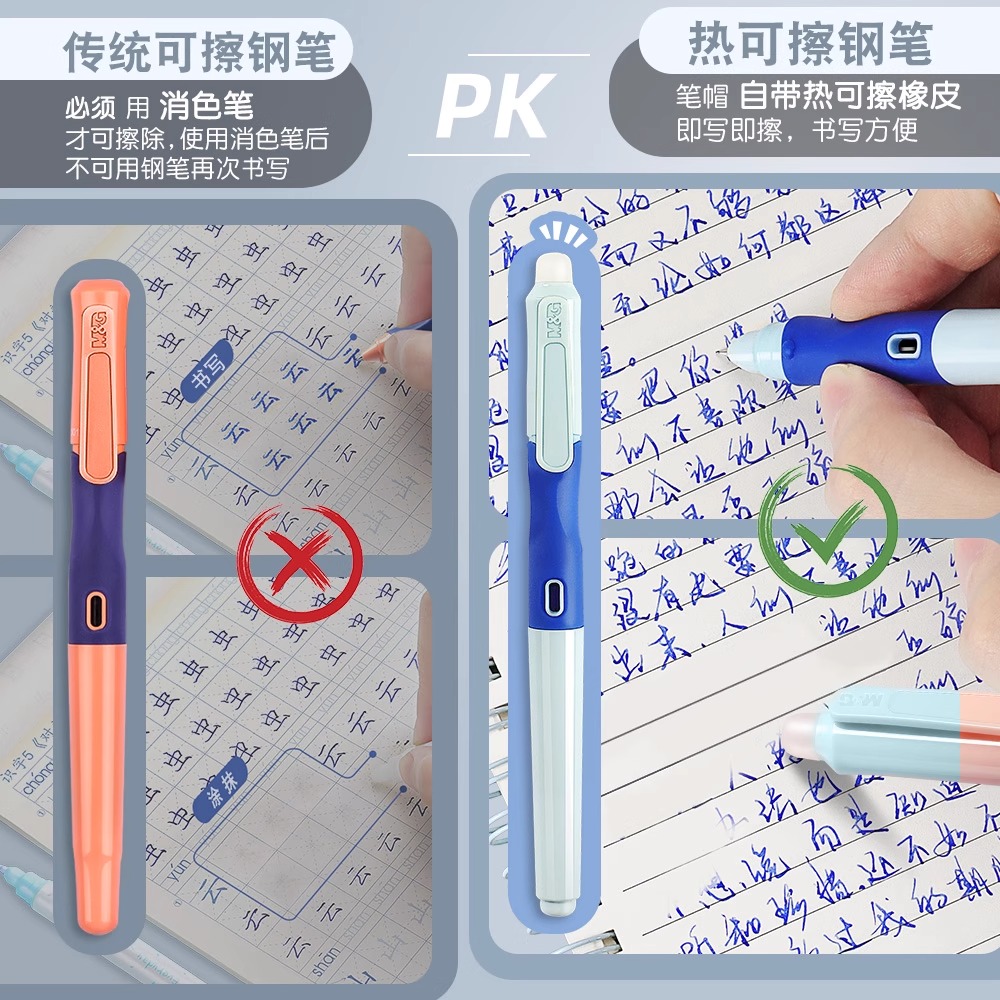 晨光优握热可擦钢笔小学生三年级专用热敏可擦墨囊可替换儿童二升三四年级上册初学者练字摩易檫橡皮擦的钢笔