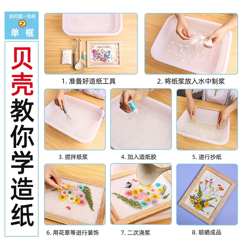 造纸术套装材料包儿童手工diy制作工具木框纸浆创意美术科学实验
