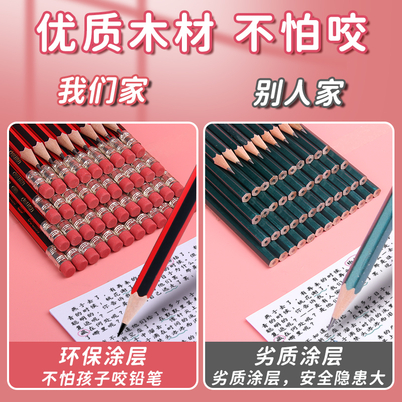 得力铅笔小学生一年级带橡皮儿童hb幼儿园初学者2B原木考试专用