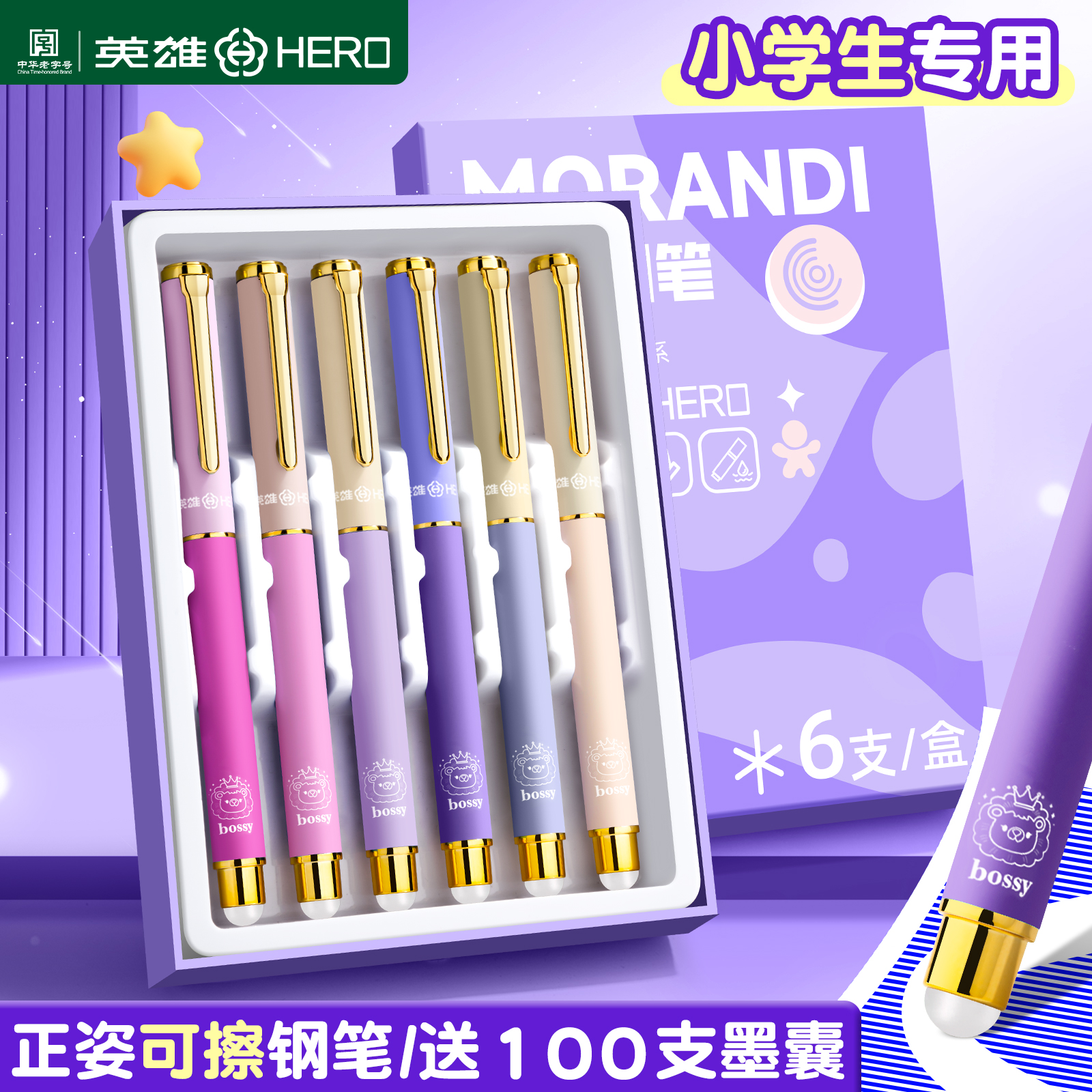 英雄可擦钢笔三年级小学生专用练字儿童热敏钢笔可替换墨囊初学者高颜值钢笔四年级不漏墨礼盒专用官方正品