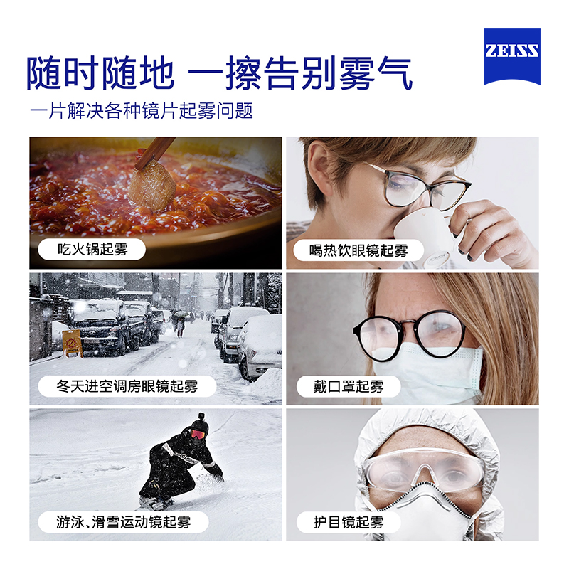 【U先】蔡司防雾擦眼镜湿巾6一次性专用清洁擦镜纸眼镜防起雾神器