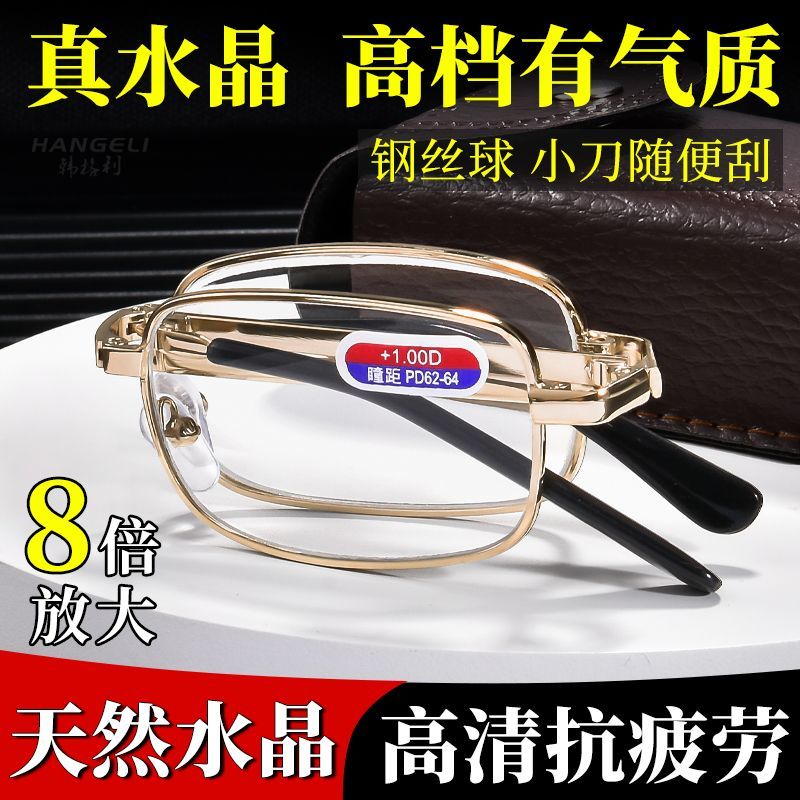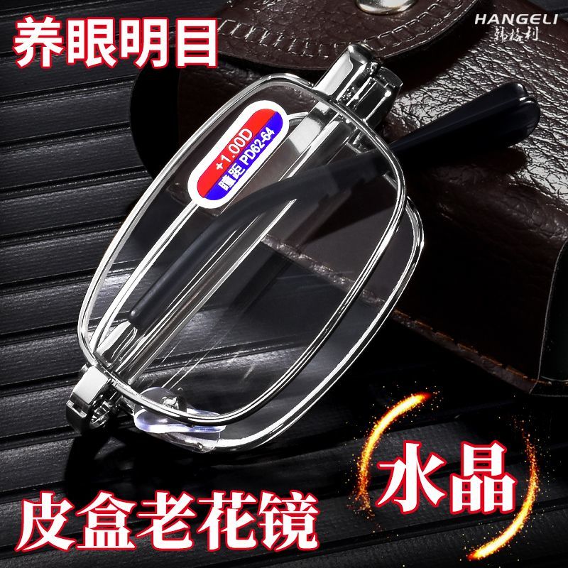折叠老花镜老花眼镜正品眼镜男中老年老花水晶可折叠高档玻璃镜片