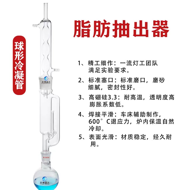 索氏提取器蛇形球形脂l肪抽出器60/150/250/500/1000玻璃萃取装置