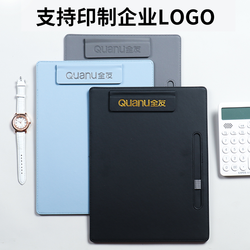 皮质文件夹板考试写字板垫板专用板夹A4文具书写垫纸板签字板合同夹餐厅菜单酒水夹加厚硬板夹会议夹定制LOGO