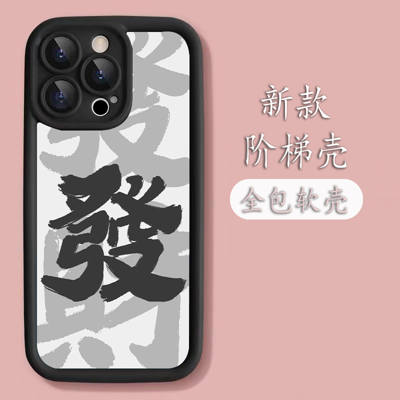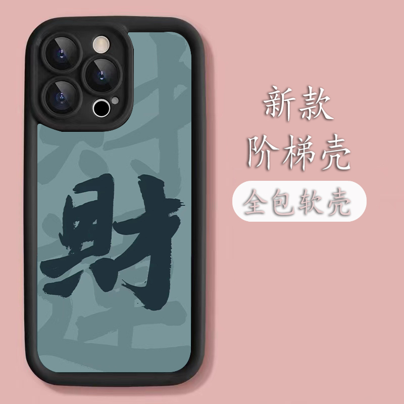 福富发财天眼阶梯壳适用于苹果15恭喜华为mate60过新年荣耀80字体小米13oppo少女手机壳vivoX100硅胶壳K50