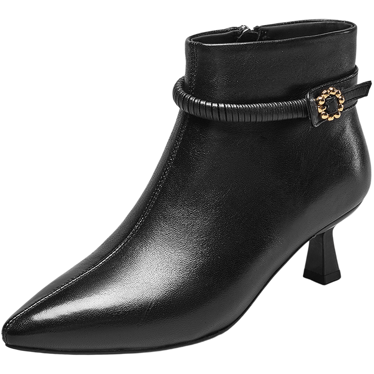 意尔康女鞋2025冬季真皮法式短靴细跟气质羊皮单靴及踝靴女士皮鞋