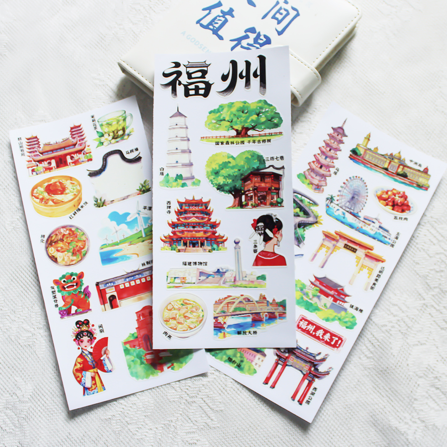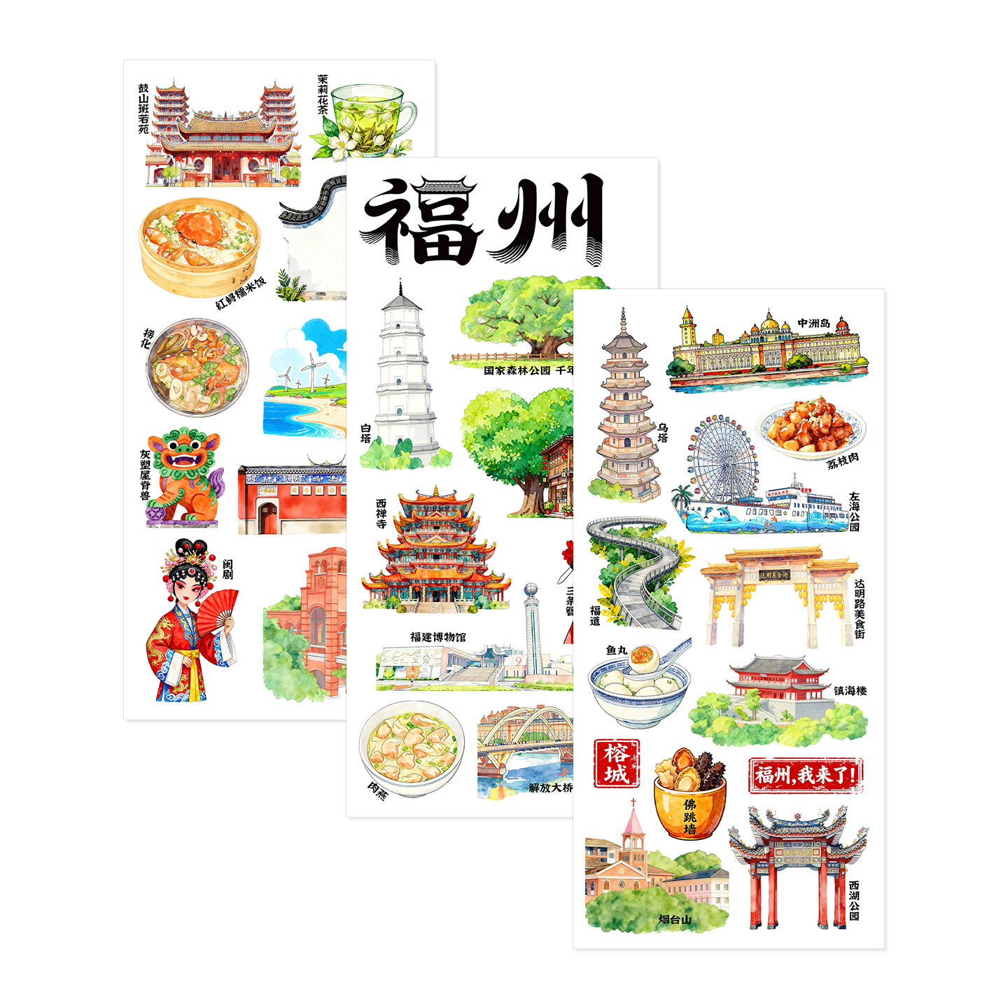 福州旅游贴纸福建城市建筑景点我的家乡美食文化手抄报识字贴画