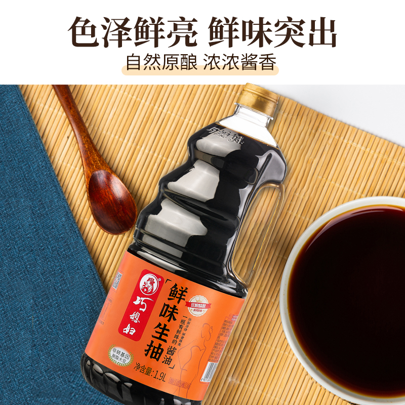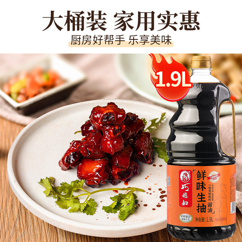 巧媳妇鲜味生抽酿造黄豆酱油家用凉拌卤炖调味大桶装1.9L炒菜食用