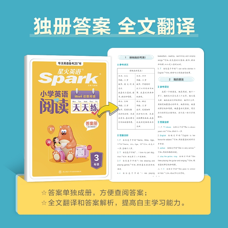 赠同步音频星火小学英语阅读天天练一年级二年级三四五六年级阅读理解专项训练习题话题练习全国通用课外书听力强化训练题100篇