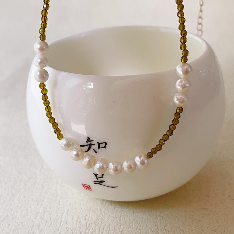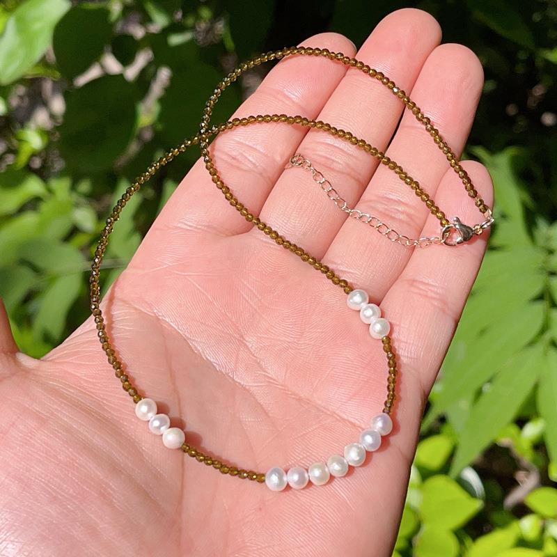 橄榄绿色 奥地利水晶 天然淡水珍珠串珠项链手链田园春天百搭少女