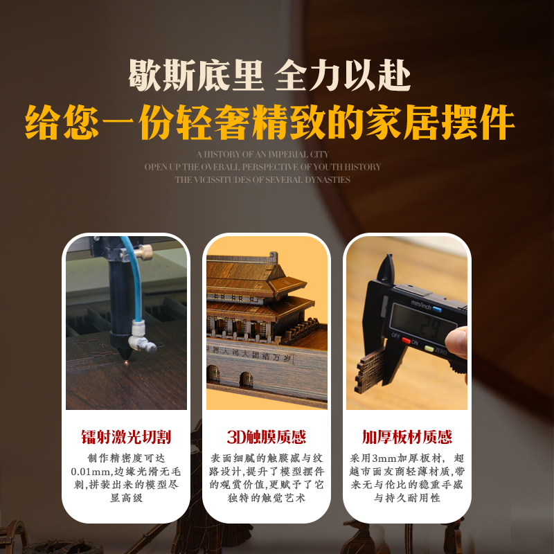 迪爱歪古建筑模型北京天安门榫卯积木质拼装玩具国庆节手工diy