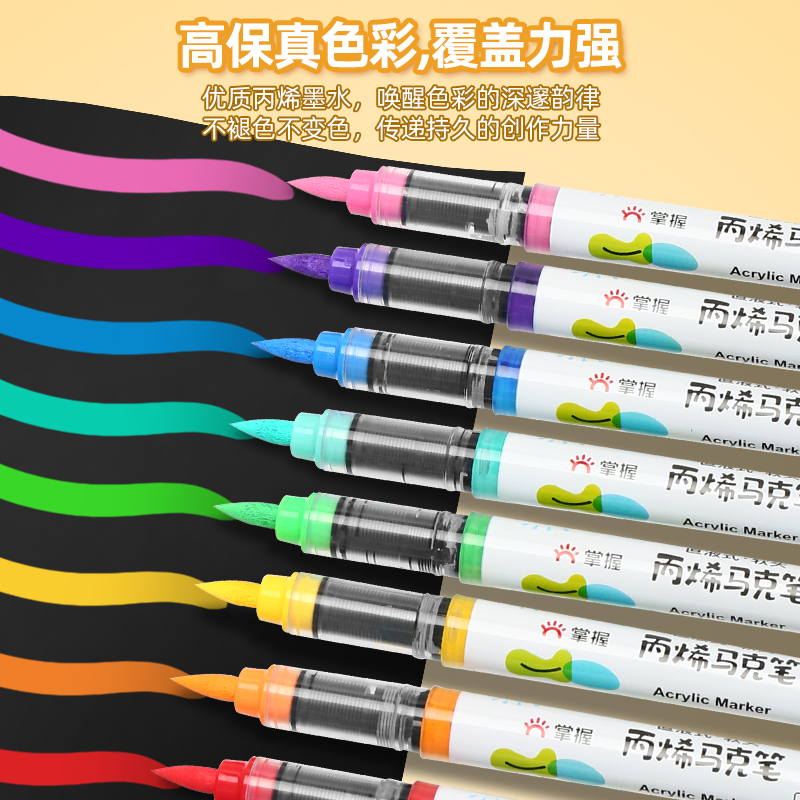 掌握直液式丙烯马克笔单支补色幼儿园彩色水彩笔儿童画笔高颜值初中小学生美术专用不透色可叠色单色彩色笔