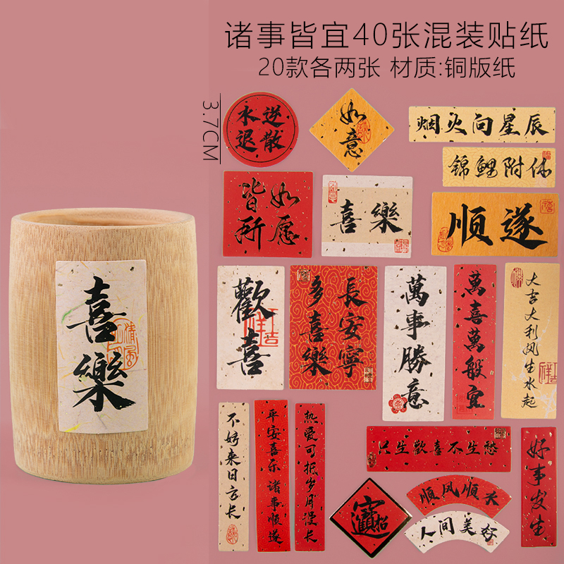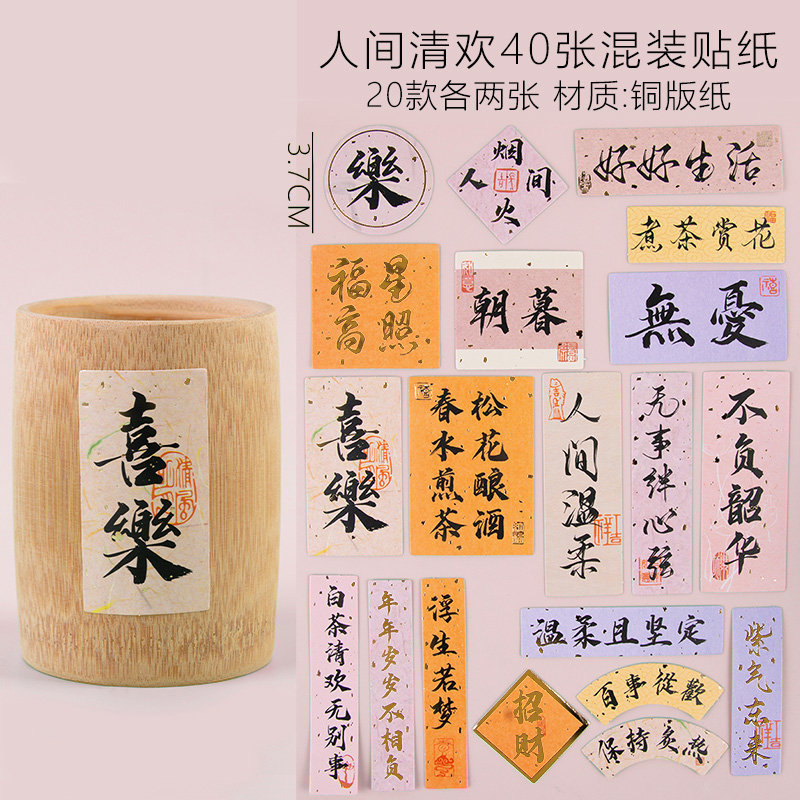 遇事不决可问春风新中式摆台竹筒甜点不干胶贴纸杯子diy铜版纸贴
