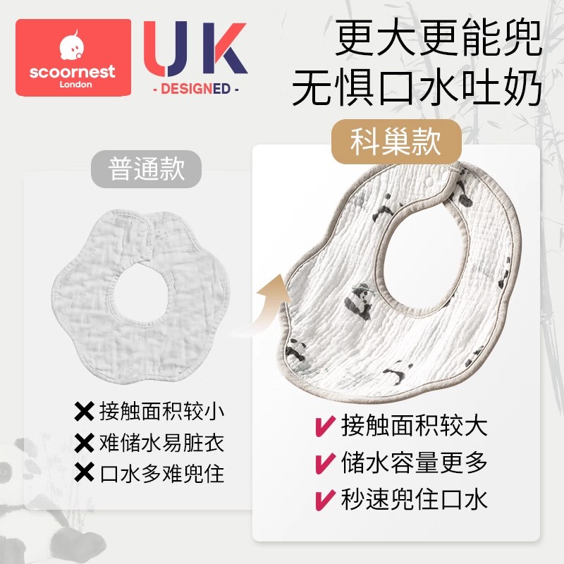 秋冬防水款宝宝围嘴A类纯棉婴儿口水围兜新生儿口水巾360度可旋转