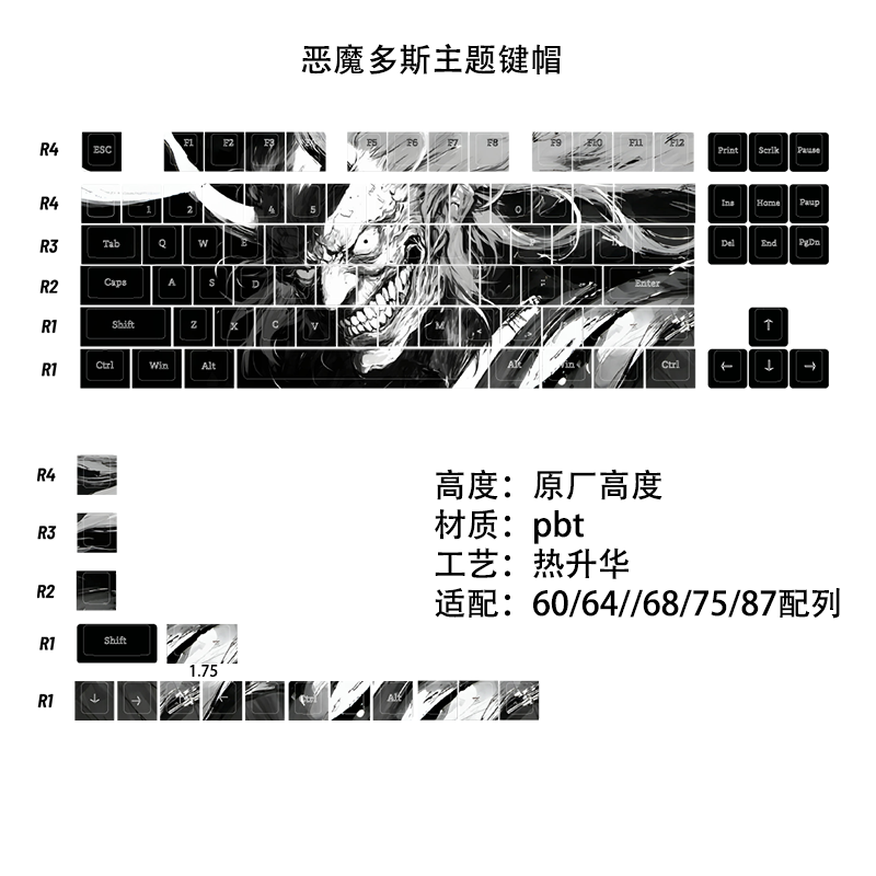 kyt恶魔多斯主题原厂高度键帽原高热升华适配ATK68/87/75机械键盘