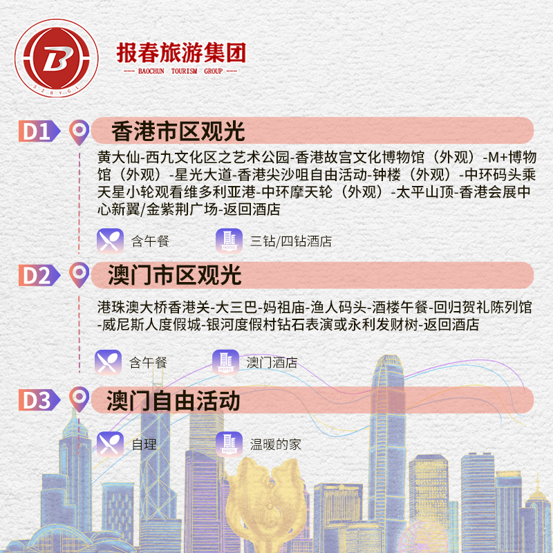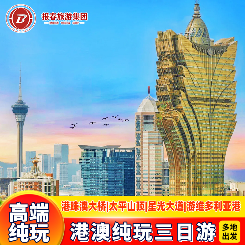港澳旅游住澳门港澳三天跟团游纯玩香港澳门旅游港珠澳大桥休闲游