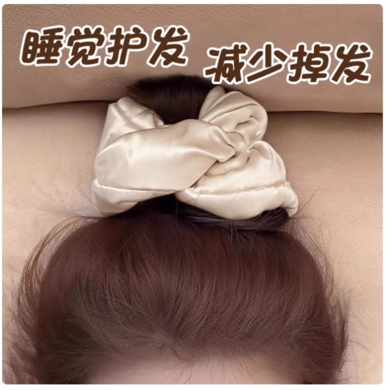 韩系高级感大肠圈枕头女款真丝缎面发绳扎丸子头皮筋头绳睡眠护发