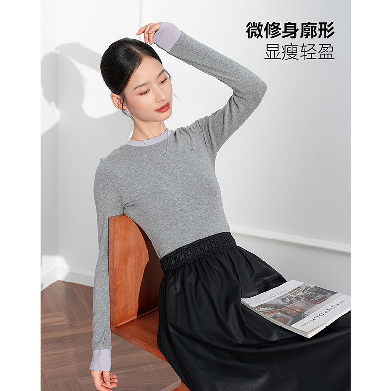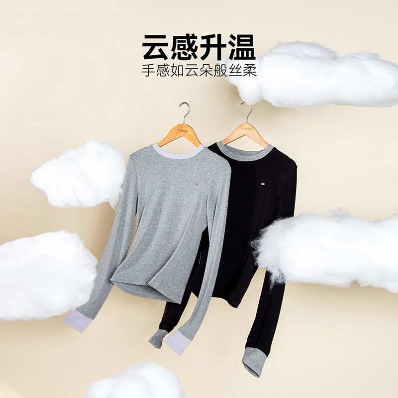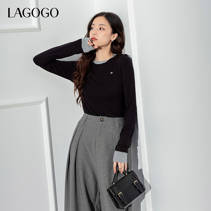 【蓄热】LAGOGO云感保暖简约T恤女拉谷谷春秋新款修身圆领上衣