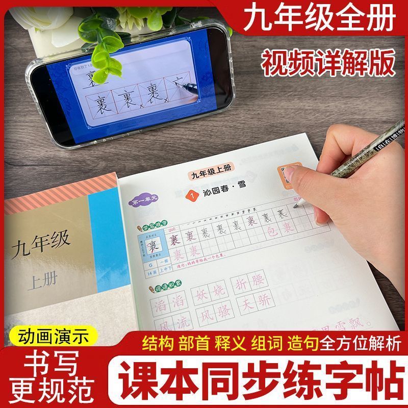九年级上册语文字帖人教版 写字课课练9年级上下册课本同步练字帖RJ每日一练临摹初三硬笔书法练字本初中生控笔训练字帖描红田字格
