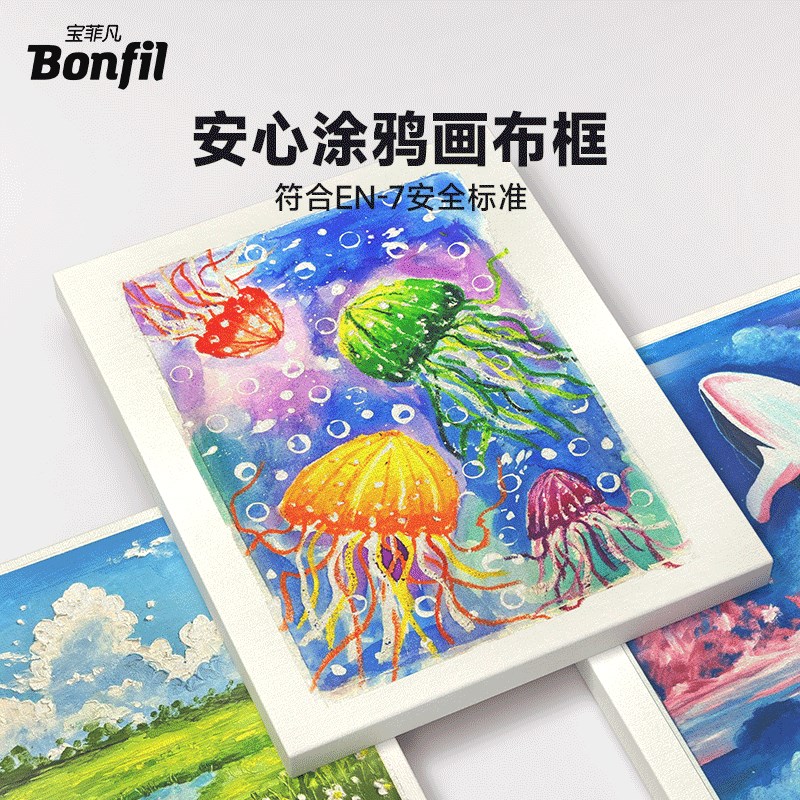 宝菲凡儿童油画布框细纹初学者布绘画20x20圆形油画框带画布空白