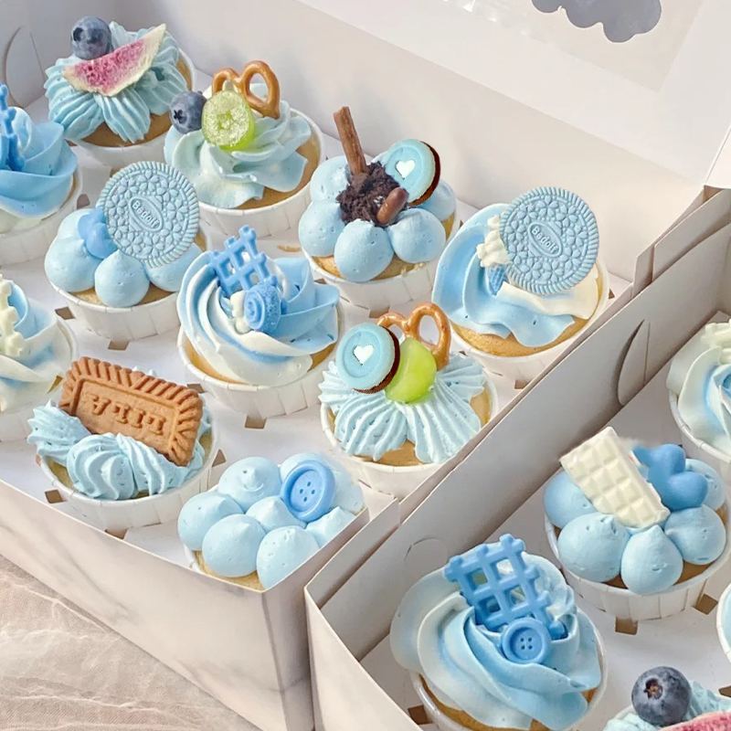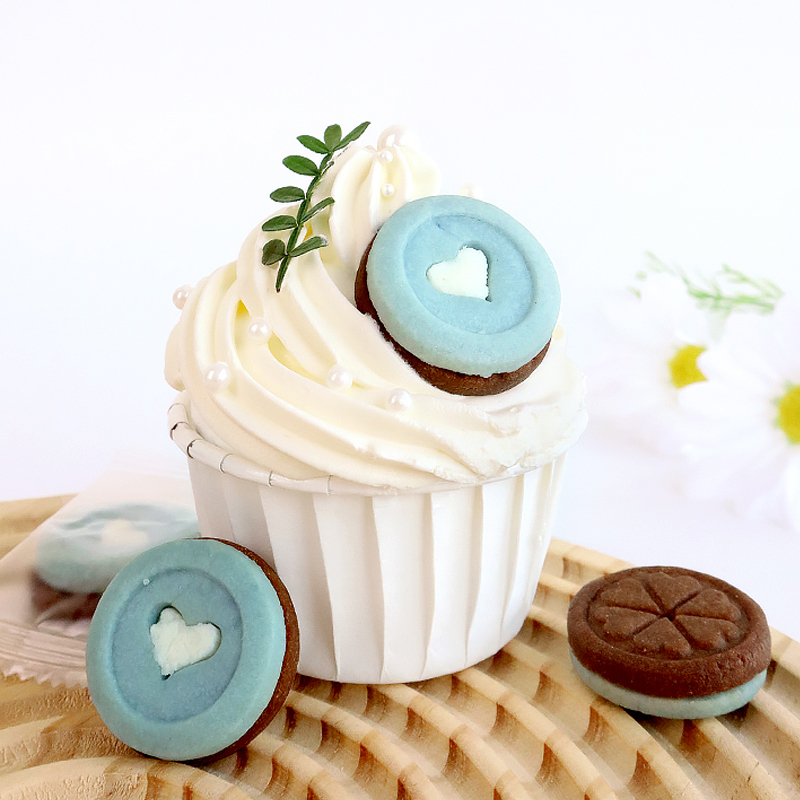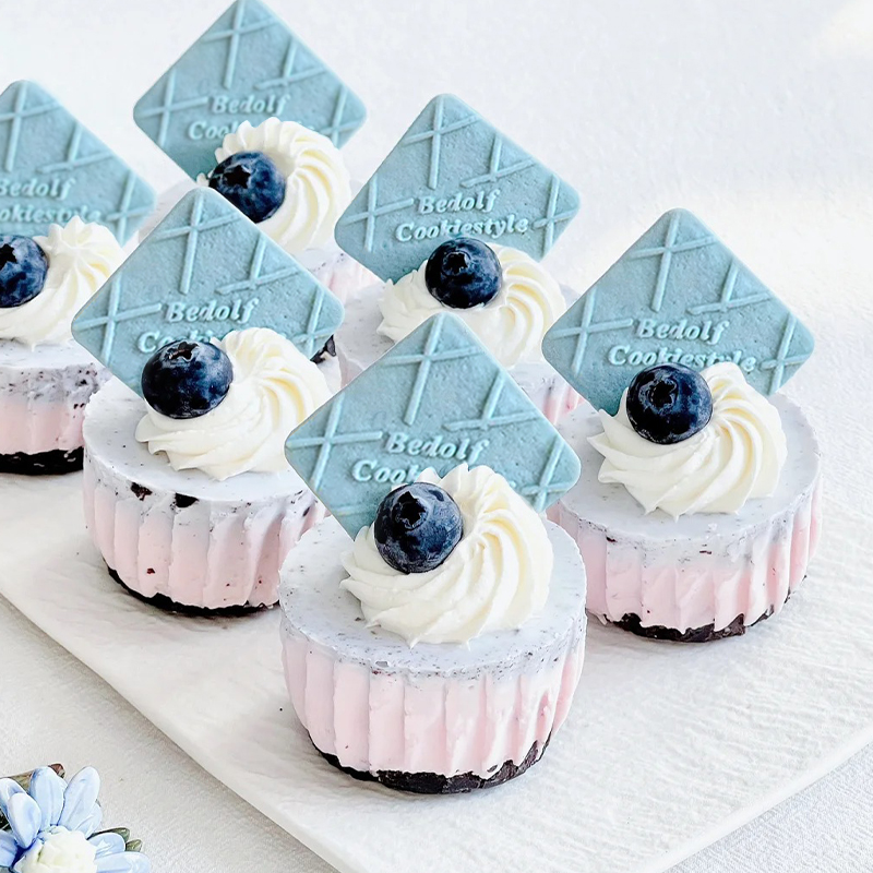 海盐芝士蛋糕装饰饼干蓝色纸杯甜品烘焙摆件酸奶碗冰淇淋小料商用