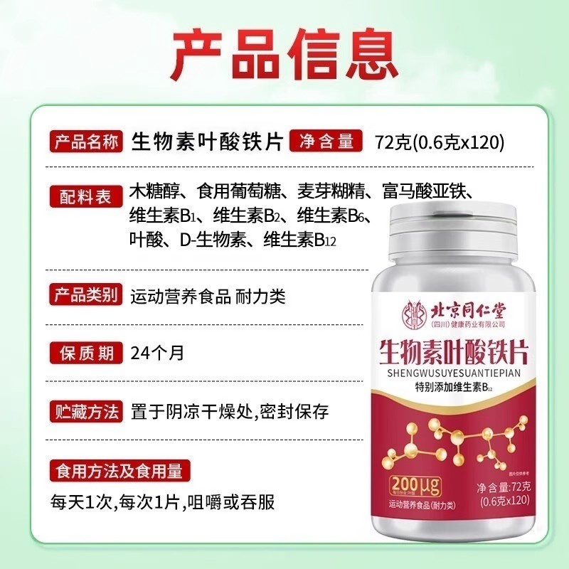 北京同仁堂维生素h黑发片叶酸掉头发严重吃什么官方旗舰店正品