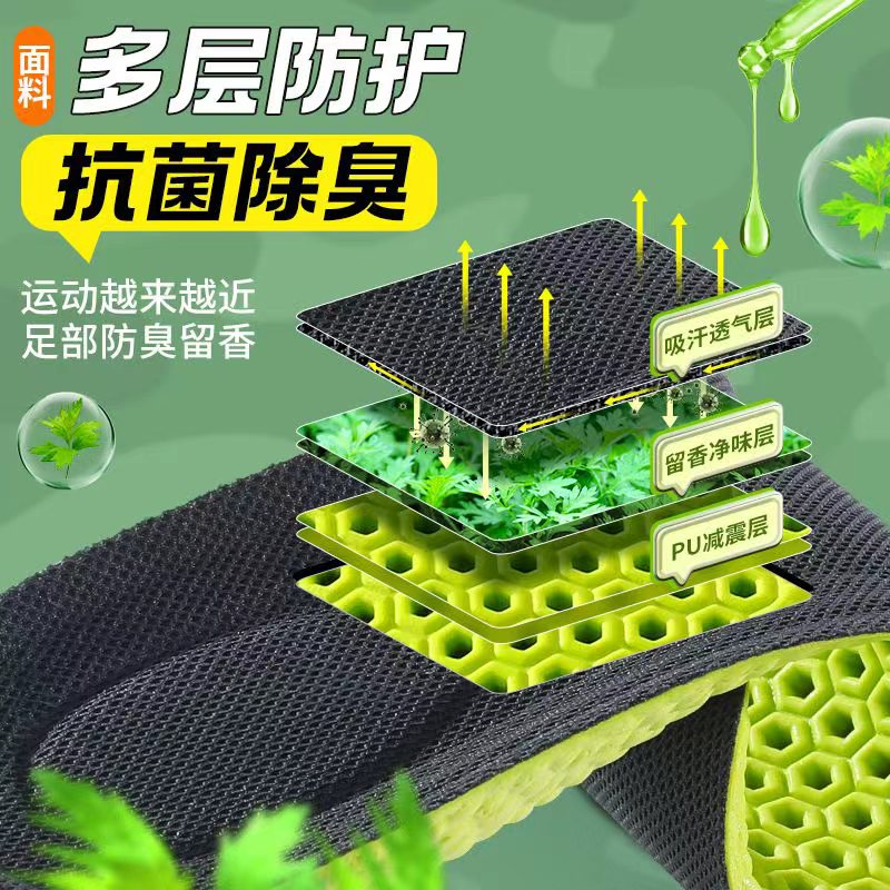 艾草鞋垫防臭专用男士吸汗透气除臭加厚运动气垫减震留香久站不累